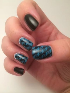 I painted two coats of Black to the Basics on my index and little fingers, and Teal the Deal on the rest. The teal looks more blue in these photos, in real life it’s more turquoisey.