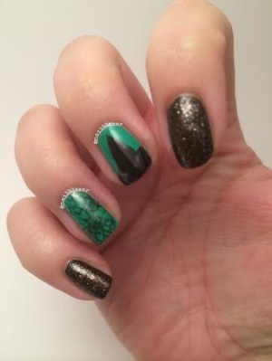To link back to the theme, my favourite song from the show is ‘No Good Deed’ – it’s an epic song, and this mani is inspired by the gorgeous costume Elphaba wears – a black, lacy dress, complete with witch’s hat!