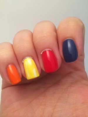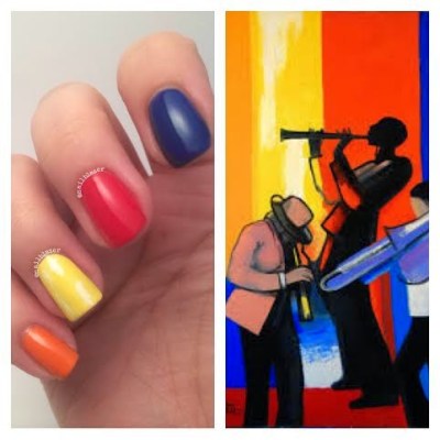 This mani is inspired by the bold colours behind the musicians.