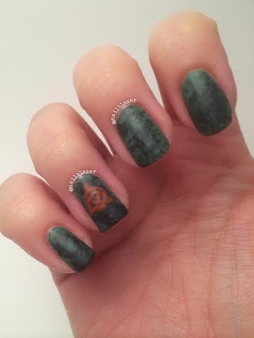 For this mani, I chose to recreate the iconic Book of Shadows – the Halliwell sisters’ book of spells and potions. This is also my first one using all polishes from the AW14 collections (yes I know some of them have been out a while!)