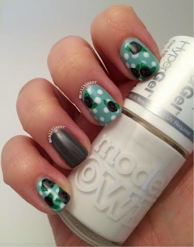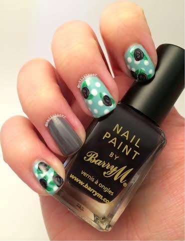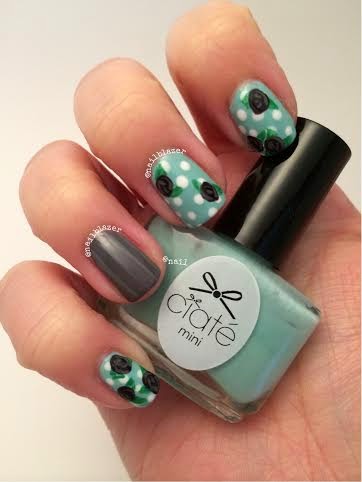For my recreation, I went for a gorgeous mint polka dot and rose mani that Sophie did in July. Visit Nailingtons to see the original.