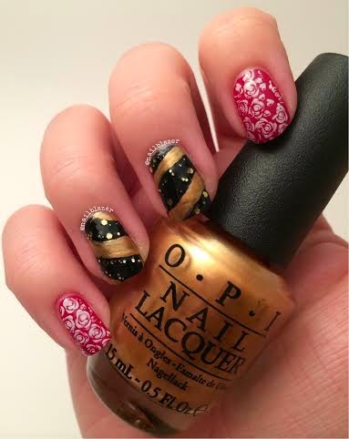 Use your stamping kit to add the designs over your thumb, index and little fingers.